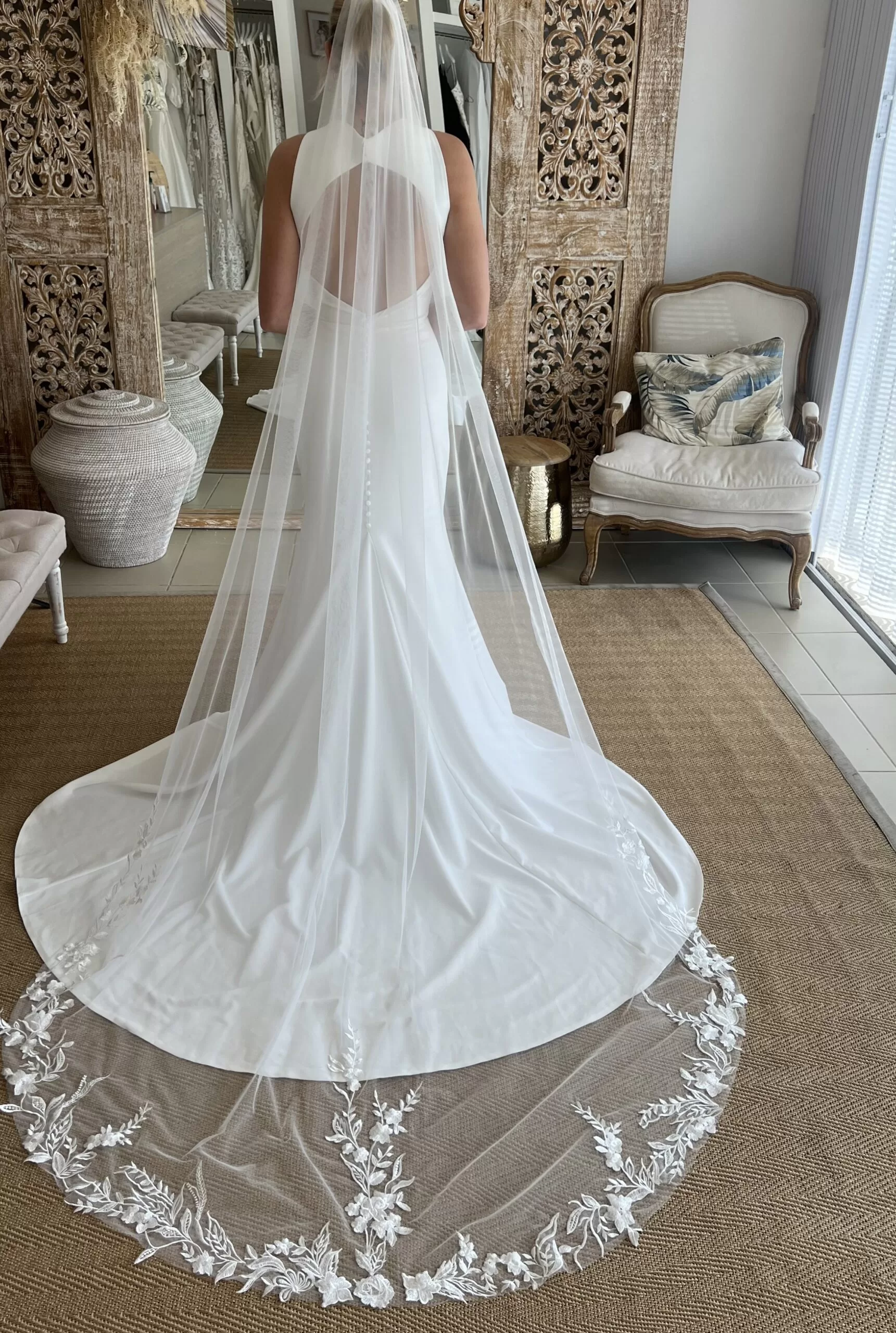 Made to order pieces will be available to ship 5 months after ordering your size and supplying your heel height. If your wedding date is sooner, please contact us with details of your wedding date and preferred size and we will advise you of rush order availability. Sale gowns ship the week after purchase via registered post. Shipping on items over $300 is free of charge worldwide.