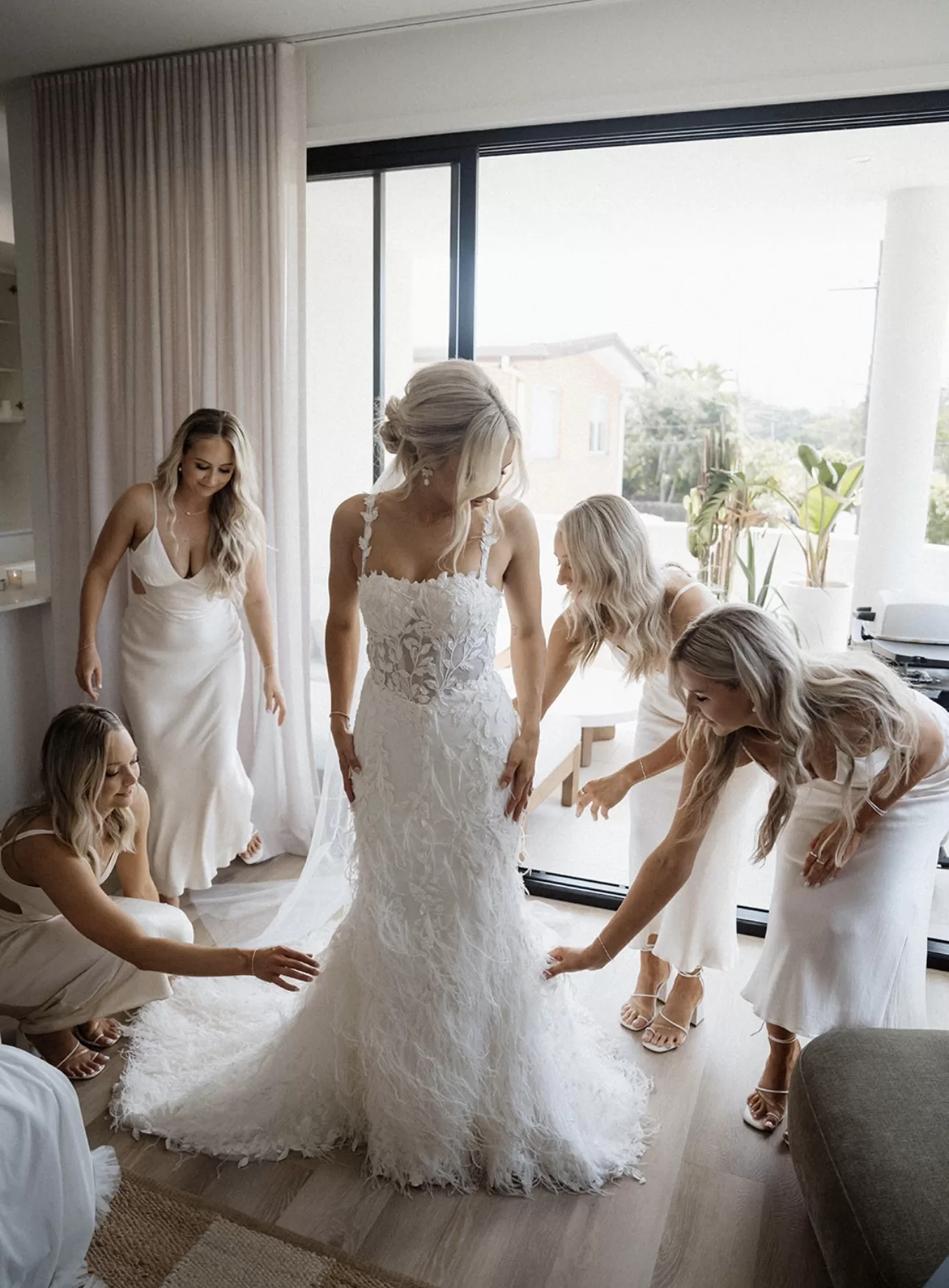 Made to order pieces will be available to ship 5 months after ordering your size and supplying your heel height. If your wedding date is sooner, please contact us with details of your wedding date and preferred size and we will advise you of rush order availability. Sale gowns ship the week after purchase via registered post. Shipping on items over $300 is free of charge worldwide.