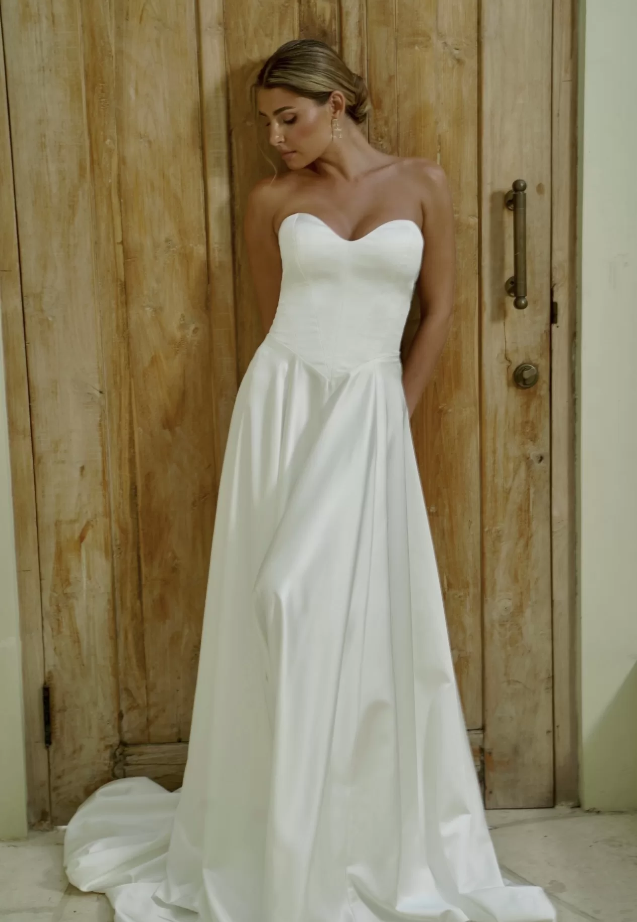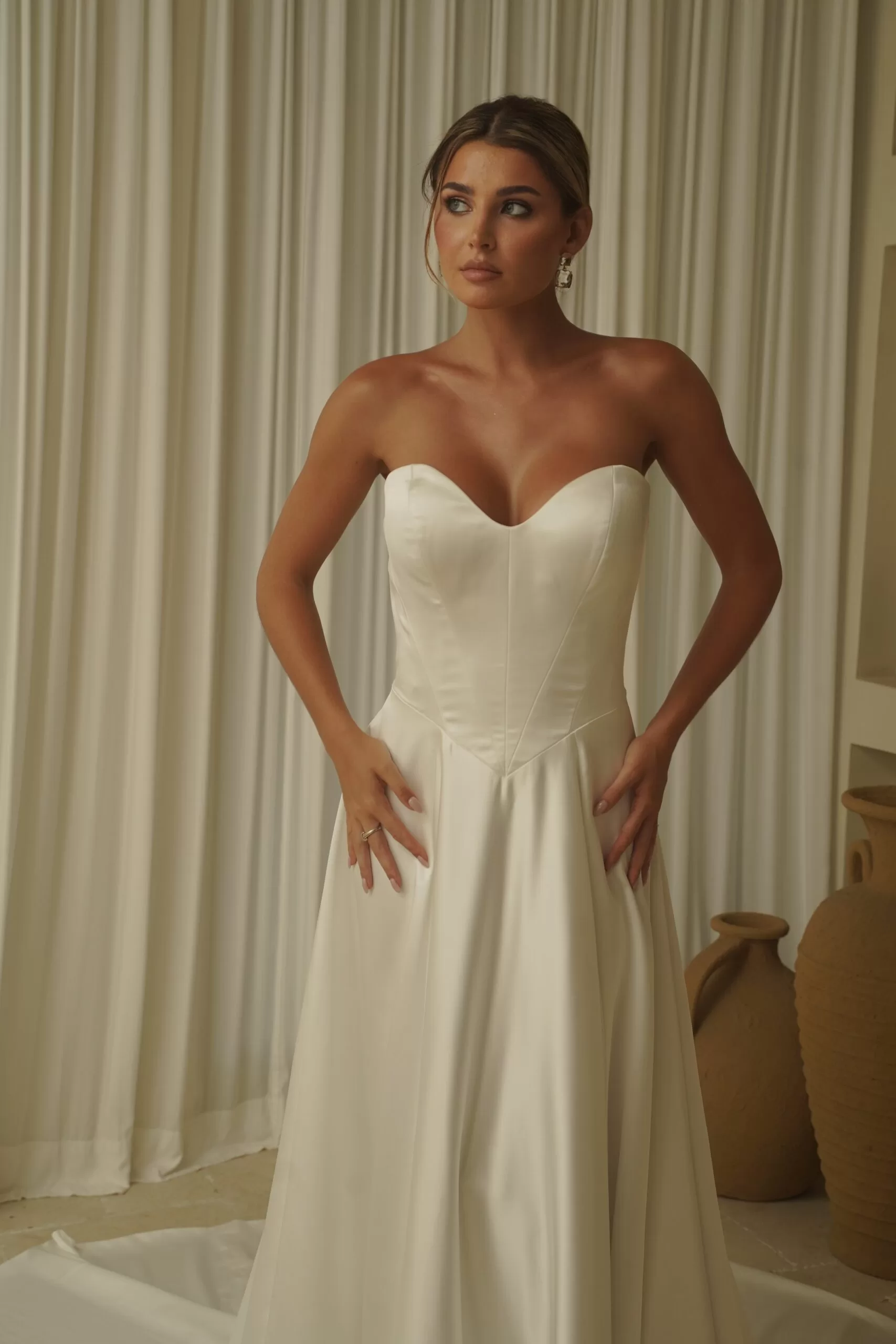 London, with her gorgeous deep sweetheart neckline, multi-seamed bodice and silk satin sheen brings the wow factor.