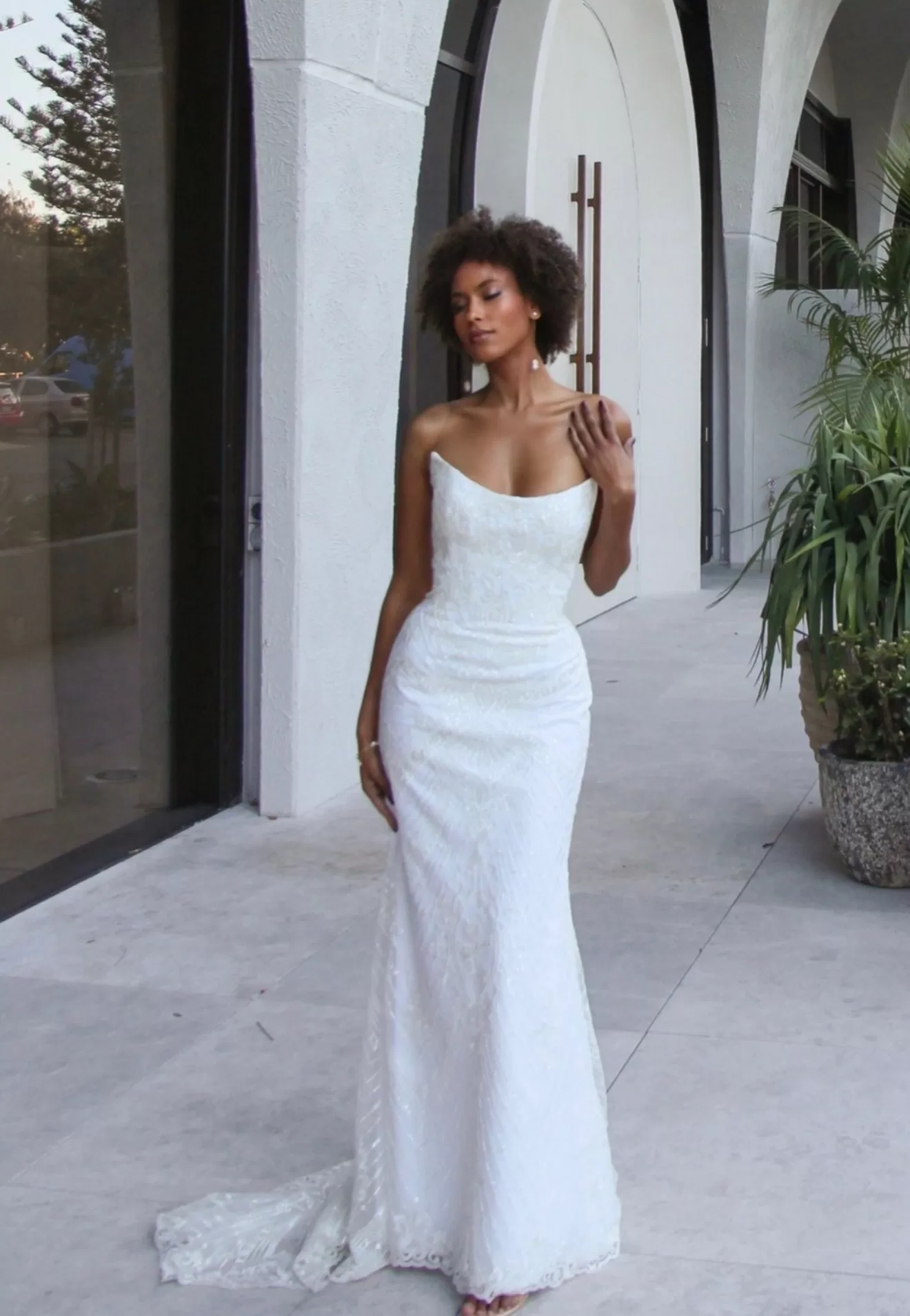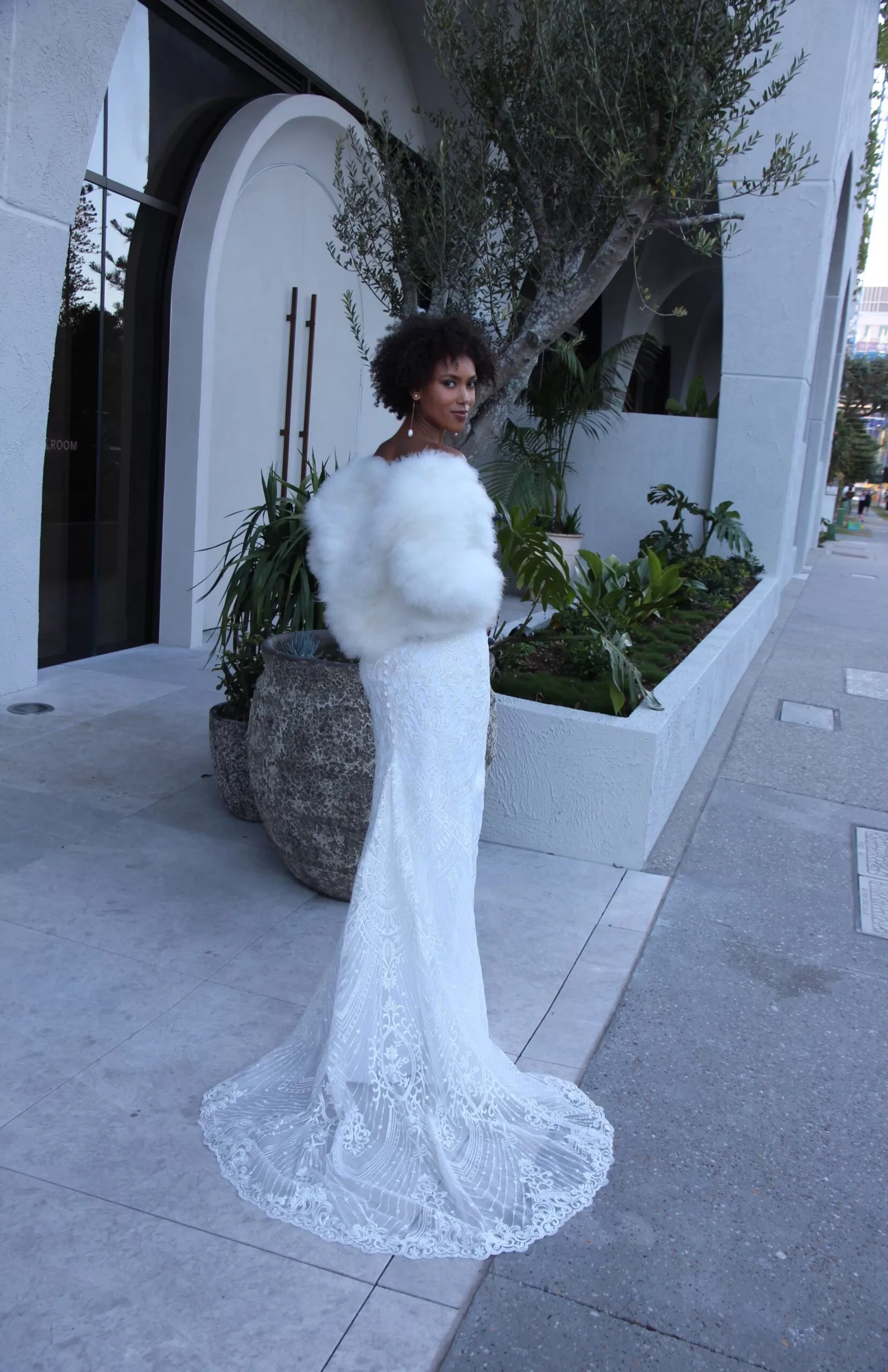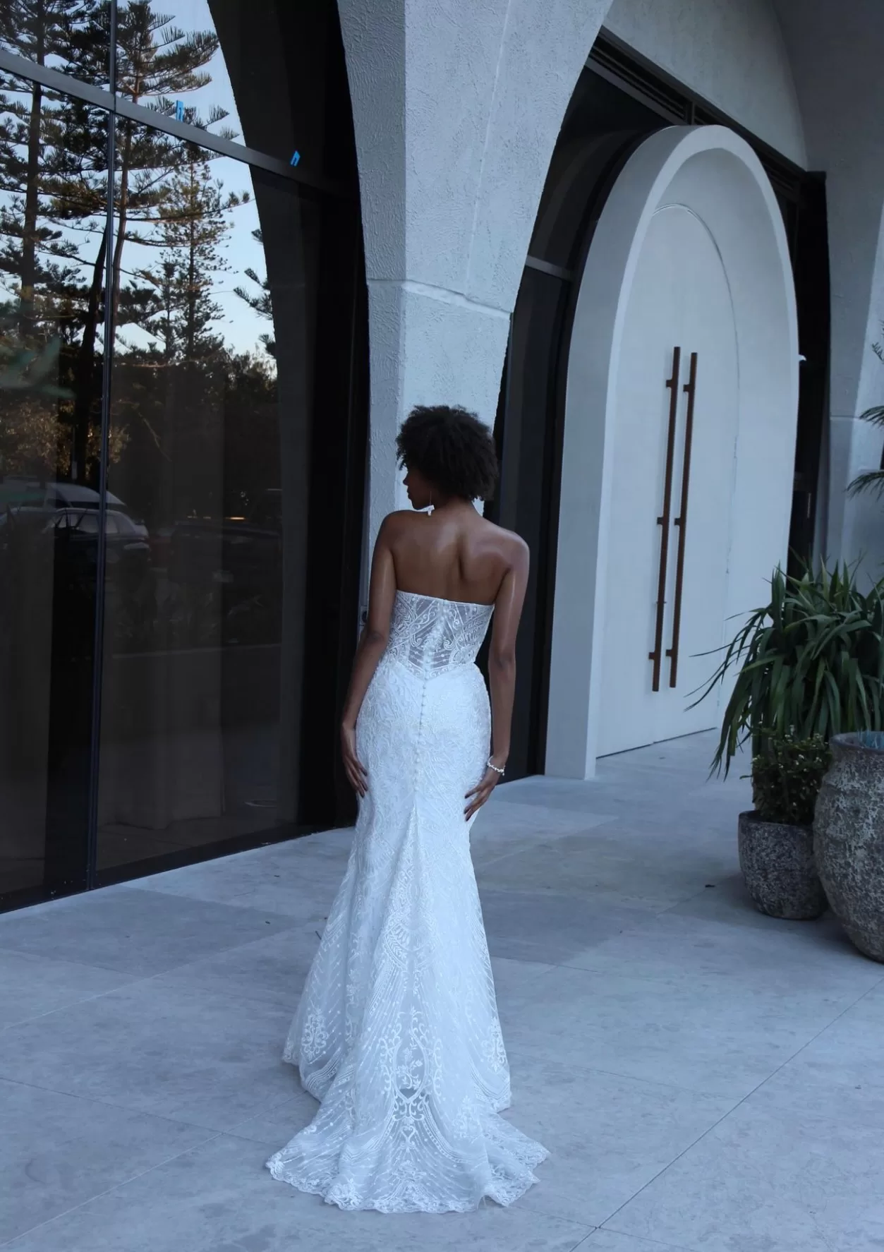 Made to order pieces will be available to ship 5 months after ordering your size and supplying your heel height. If your wedding date is sooner, please contact us with details of your wedding date and preferred size and we will advise you of rush order availability. Sale gowns ship the week after purchase via registered post. Shipping on items over $300 is free of charge worldwide.