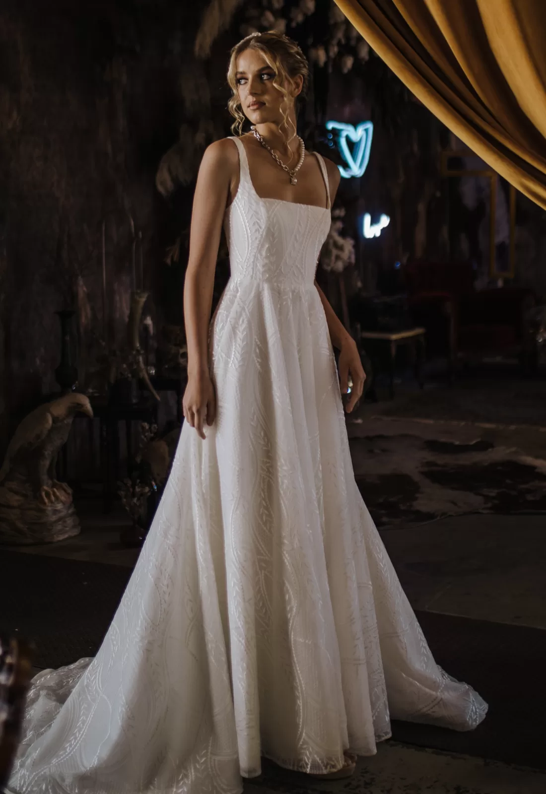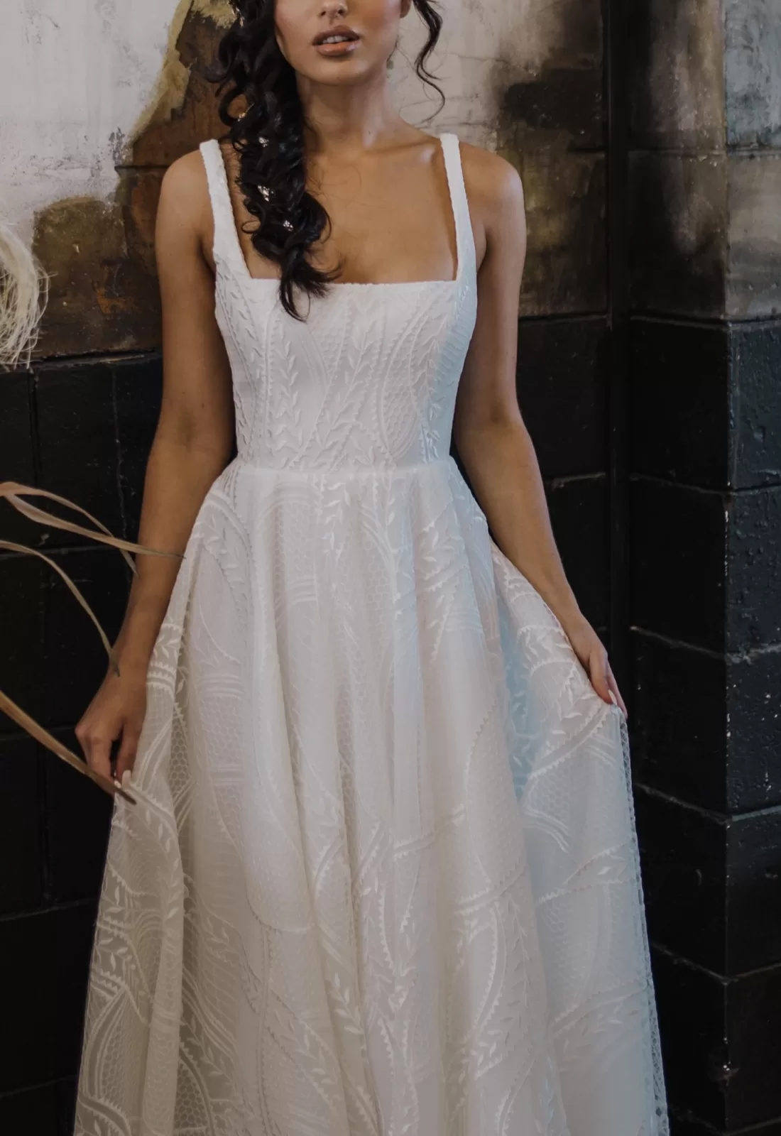Polly is good-girl vibes with a cool-girl edge. Her fitted bodice with on-trend square neckline and wide set straps pair beautifully with her swishy straight falling skirt. Your sense of fun will shine through in your wedding imagery in Polly. She is made for running through fields, riding horses and dancing under the stars. She’s at home in the city paired with sexy pumps or in the country teamed with embroidered cowgirl boots. Dress her your way and Polly will shine bright as the stars.