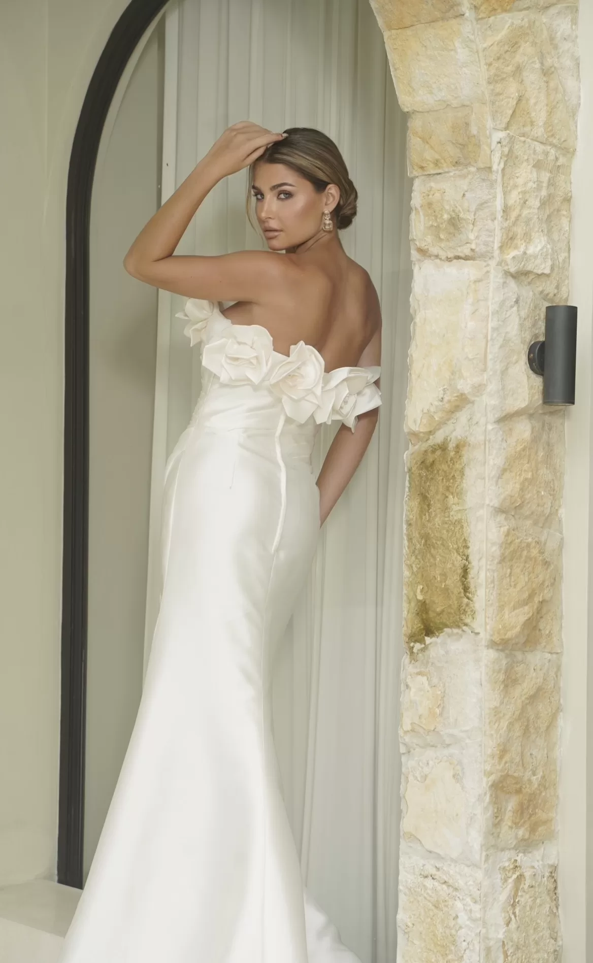 Trinity is crafted from pure mikado satin. The sheen of her gorgeous fabric are both memorable and photogenic.