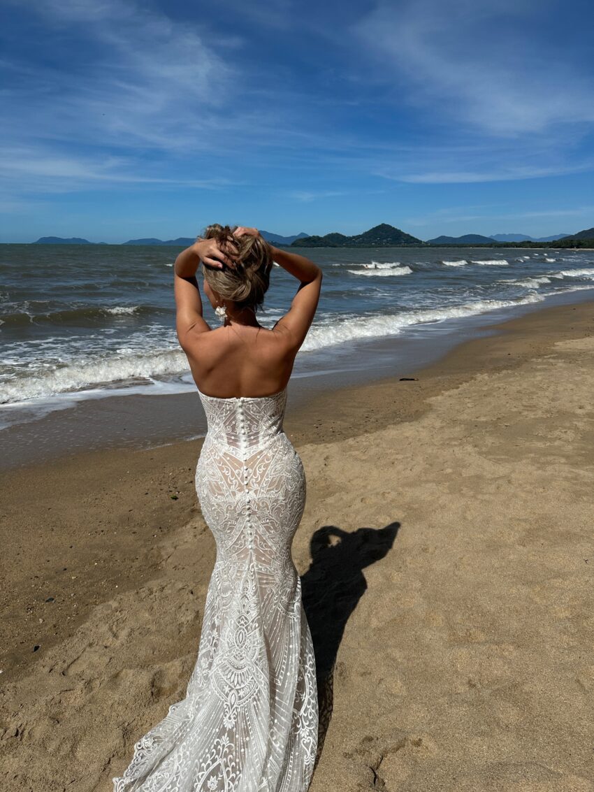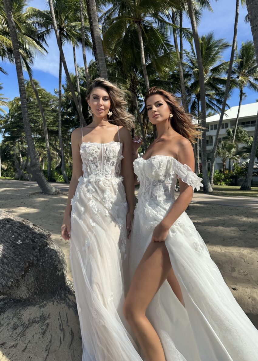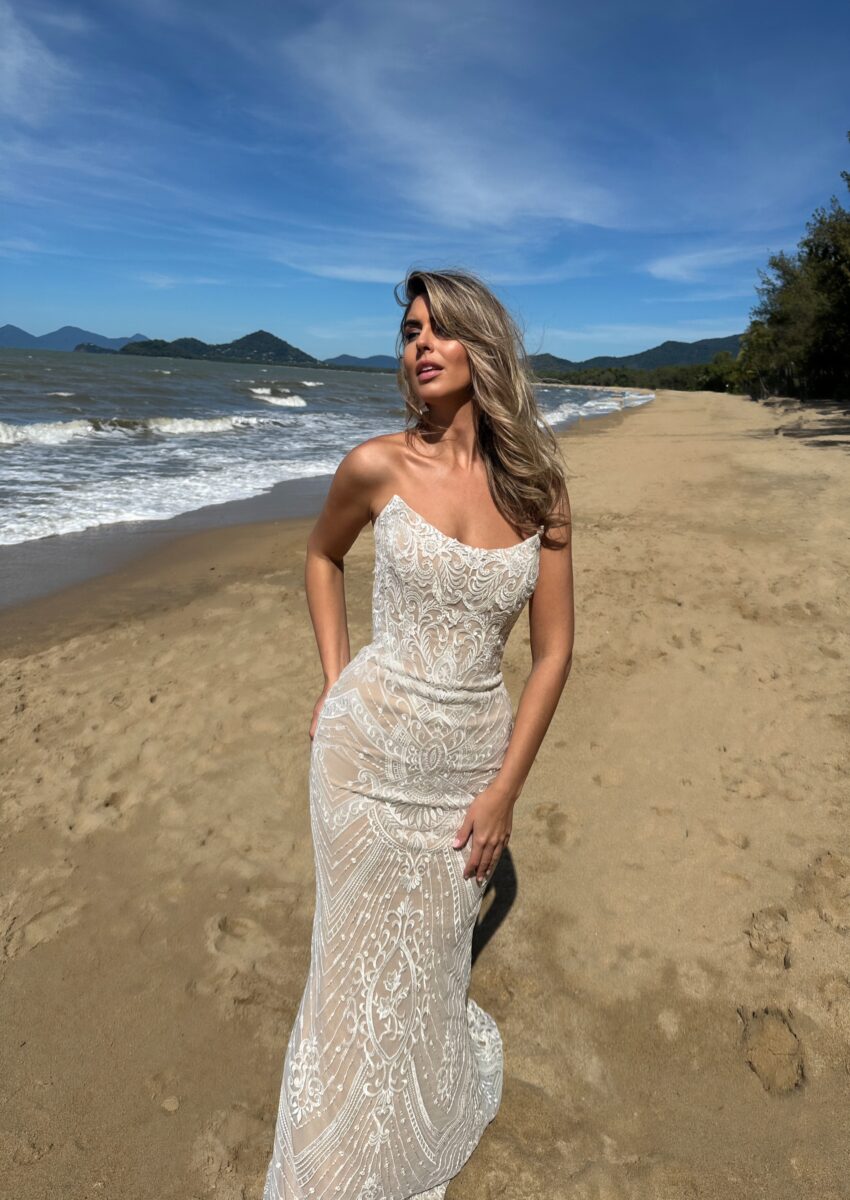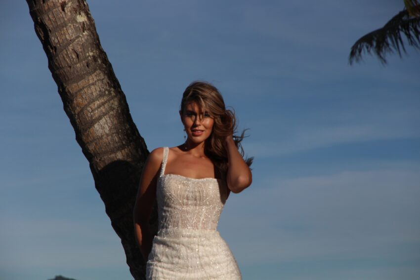 The latest Kate Gubanyi gowns sparkle on Golden sand and glisten under Golden light.